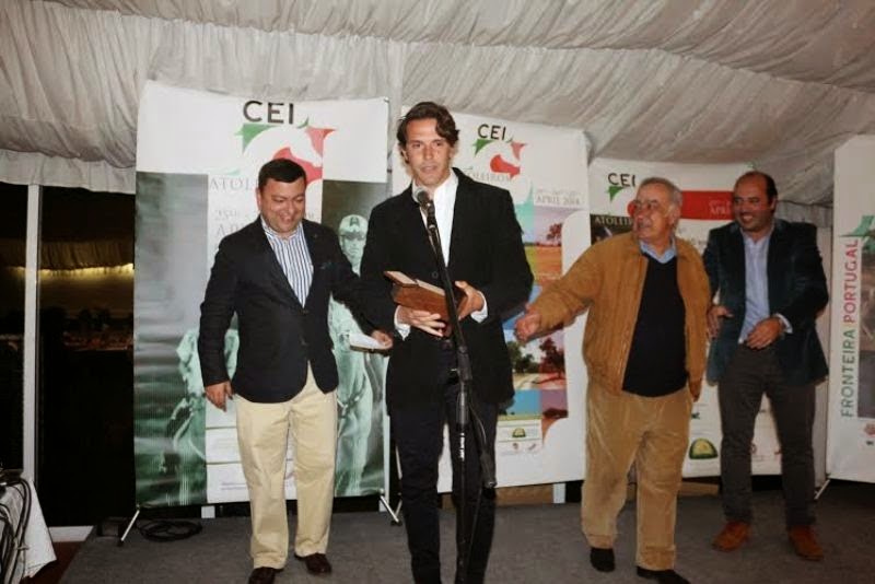 A festa de entrega de troféus da Rádio Portalegre - que esta noite pode seguir no programa "3 Tércios", no ar entre as 22 e as 23 horas - foi um sucesso e consagrou, entre outros, o cavaleiro João Ribeiro Telles Jr. como Máximo Triunfador da última temporada, bem como o colombiano Jacobo Botero na classe de cavaleiros praticantes e Marcos Bastinhas como um dos jovens ginetes mais destacados do ano. O Dr. Paulo Pereira representou a Sociedade Campo Pequeno e recebeu os troféus que distinguiram a Academia de Toureio do Campo Pequeno, bem como o que galardoou Rui Bento pela sua actividade na gestão da primeira praça do país. O antigo matador não compareceu por se encontrar em Espanha a acompanhar os jovens alunos da Academia Diogo Peseiro e Sérgio Nunes no Bolsín de Zamora.