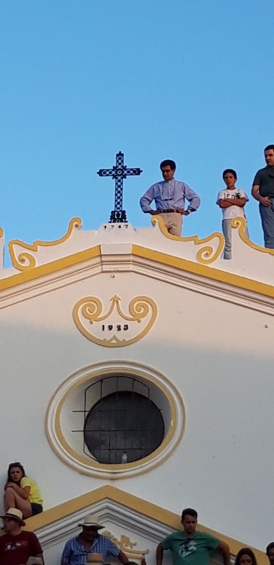 | Morante ontem em Barrancos com o Dr. Pedro Marques. Em baixo: o padre assistiu à corrida de morte no telhado na igreja |