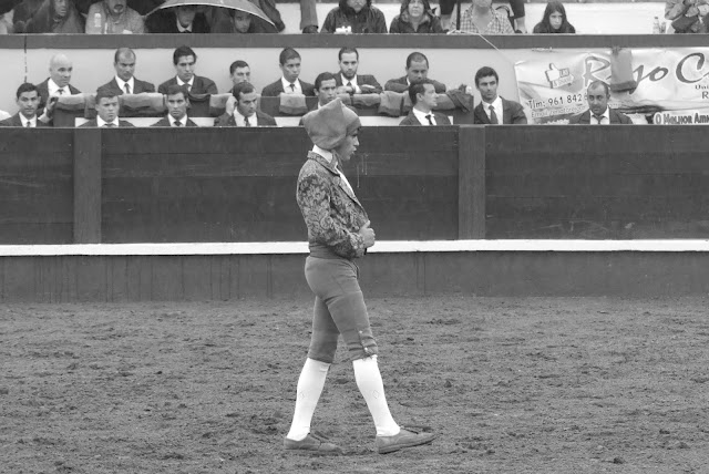| Em primeiro plano, José Macedo Tomás, cabo dos Amadores de Coruche; atrás, Manuel Pires, cabo dos Amadores do Ramo Grande e o veterano Filipe Lemos, que esta tarde se despediu das arenas |