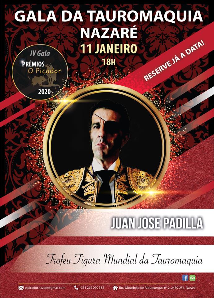 | Juan José Padilla distinguido na IV Gala da Tauromaquia a 11 de Janeiro na Nazaré |
