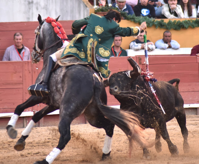 Foi a tarde das portas gaiolas... Palha fez três a receber os toiros e Moura Jr. duas. A mostrar a decisão e a atitude com que ali estiveram os dois, a jogá-las todas em aguerrida competição e em luta pelo triunfo e pelo posto que estava em aberto na próxima corrida de 3 de Junho - conquistado pelo cavaleiro de Monforte com todo o merecimento e justiça.