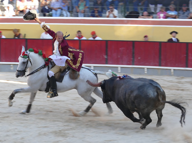 Francisco Palha teve uma lide brilhante e emotiva no segundo toiro da tarde, brindada aos Campinos, símbolos maiores destas populares Festas do Colete Encarnado. Lide perfeita e sem falhas, que o público reconheceu com calorosos aplausos e o director de corrida premiou com música, mas Palha não esteve de acordo e mandou a banda parar - atitude que não fica bem a nenhum toureiro. Ainda existe nas touradas um director de corrida que é a autoridade suprema do espectáculo, não são os artistas que decidem e decretam quando deve ou não deve a bandar tocar...